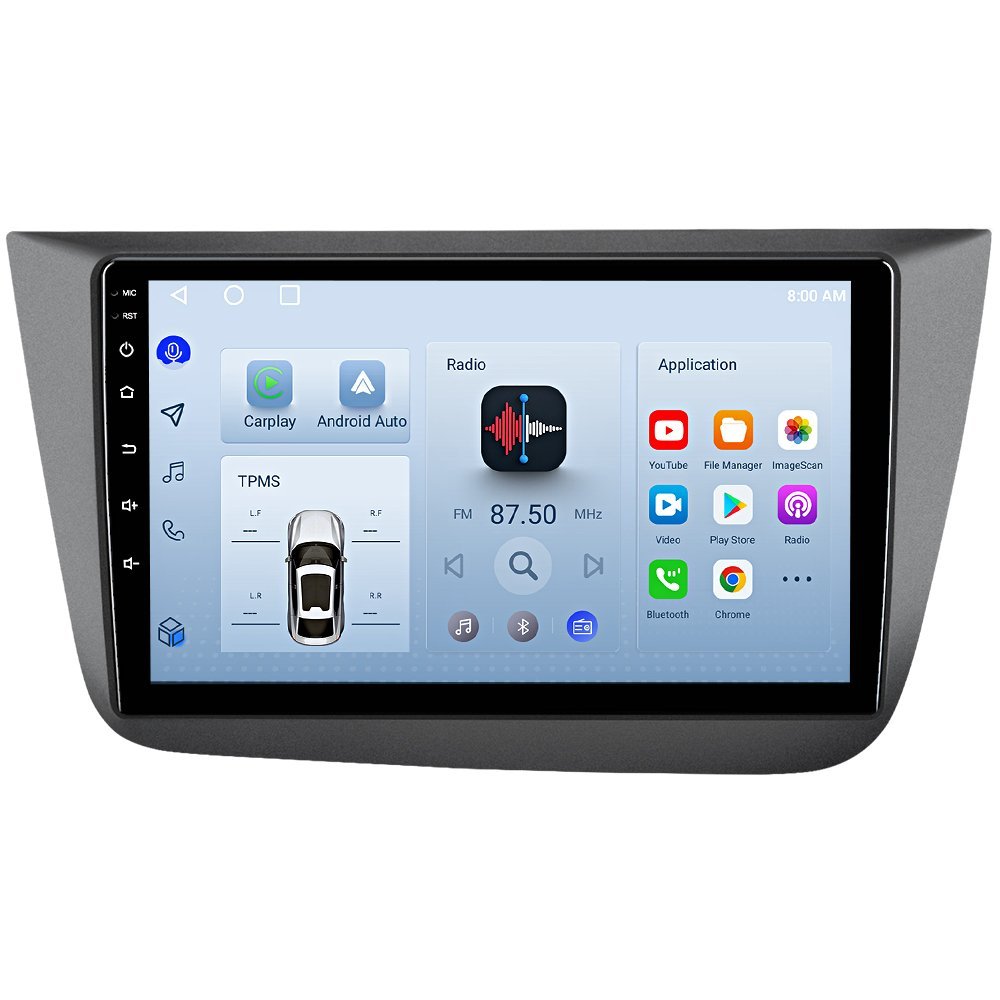 Modernes Android Autoradio mit Wireless CarPlay, Bluetooth 5.0, GPS Navigation, RDS/FM, DAB+ Unterstützung und voller OEM-Kompatibilität – speziell entwickelt für Seat Altea Modelle.